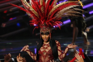 "E agora, voltem com esta vadia que tinha muito a dizer sobre mim para a imprensa? E então, Miley?", disse a rapper após subir ao palco para receber o prémio de melhor vídeo de hip-hop com "Anaconda".